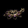 A refined Victorian pendant crafted in 9ct yellow gold. The openwork design features eight petal-like extensions, each set with a vivid amethyst in a classic claw setting. Twenty delicate seed pearls, surrounding a central six-petal gold flower with a luminous pearl centre. A decorative bail, also pearl-set, completes the graceful silhouette.
